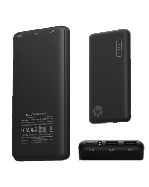 INIU Power Banks have been recalled due to an error that can cause them to overheat and ignite, posing fire and burn hazards to consumers. This recall involves INIU 10,000mAh portable power banks, model BI-B41. The recalled power banks have a black or blue case, and the INIU logo and a paw-print LED light are on the front.